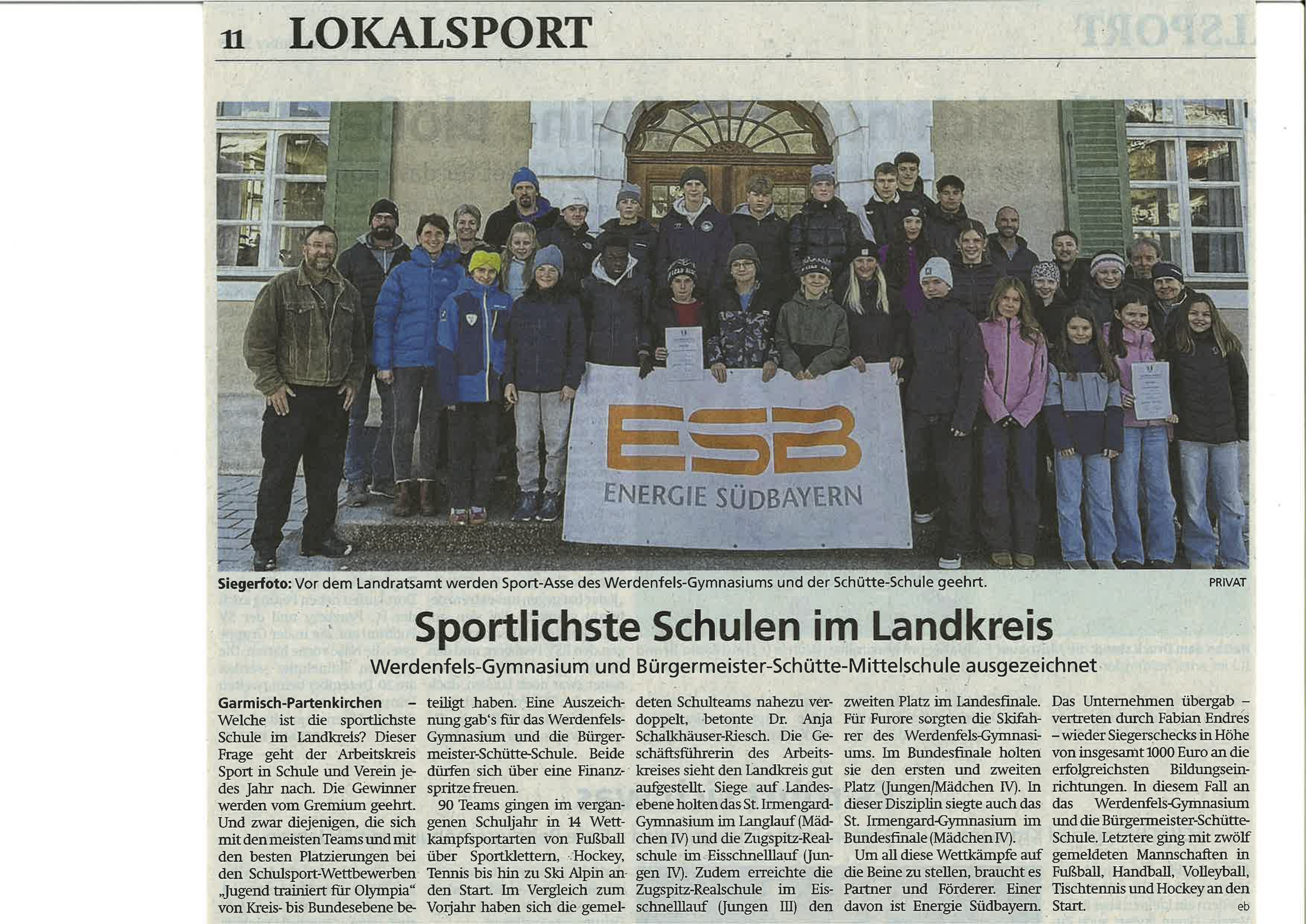 Auszeichnung für Sport-Asse: Werdenfels-Gymnasium und Schütte-Mittelschule sind die sportlichsten Schulen Jedes Jahr stellt der Arbeitskreis Sport in Schule und Verein die Frage, welche die sportlichste Schule im Landkreis ist. Nun wurden die Gewinner geehrt: Das Werdenfels-Gymnasium und die Bürgermeister-Schütte-Mittelschule wurden für ihre herausragenden Leistungen im Schulsport ausgezeichnet.