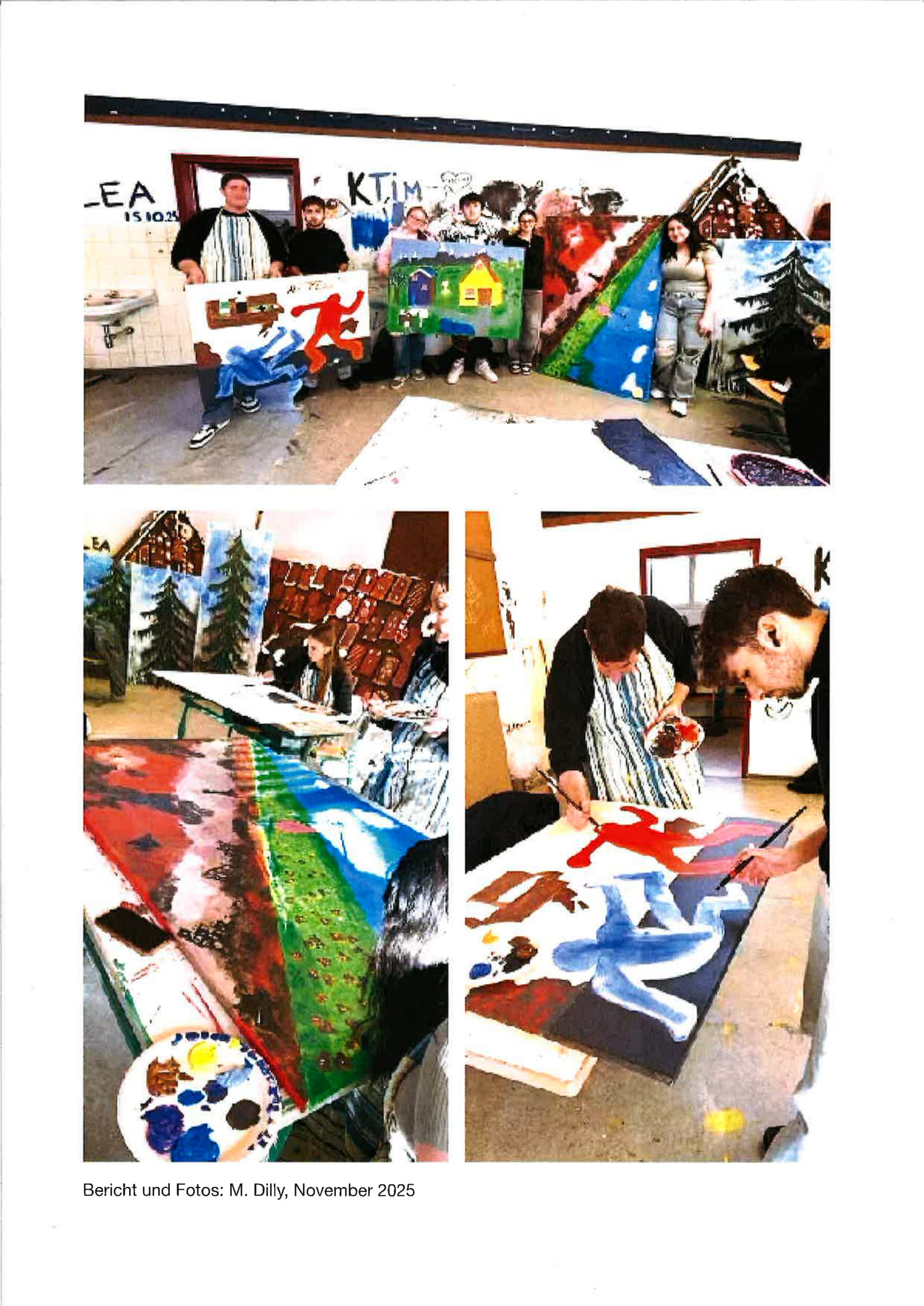 Es entstanden künstlerisch anspruchsvolle Bilder, etwa zu Gewalt gegen Kinder oder Kindern in Not, die zunächst im Schulhaus ausgestellt werden; eine Präsentation im öffentlichen Raum in Garmisch ist für 2026 vorgesehen.[10]