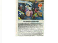 Große Faszination lösten Uniform, Handschellen und vor allem das Einsatzfahrzeug aus, als Erinnerung durften alle einen kleinen Winkerkellen-Anhänger mit nach Hause nehmen.[13]